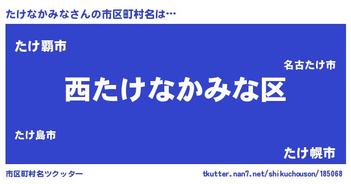 | 男性向けラノベタイトル風あだ名 | 『タケナカミナアートオンライン』 |