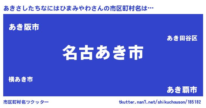 | 男性向けラノベタイトル風あだ名 | 『あきさしたちなにはひまみやわに滅ぼされるだけの簡単なお仕事です』 |