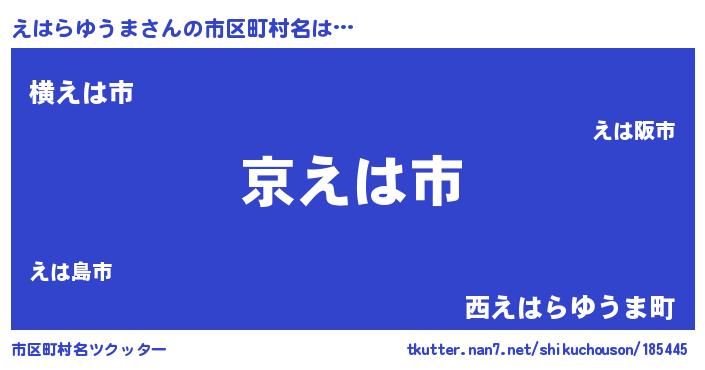 | 男性向けラノベタイトル風あだ名 | 『この素晴らしい世界にえはらゆうまを!』 |