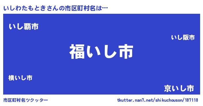 | ヘコむあだ名 | 『いしわたもとき(笑)』『いしっぺ』 |
