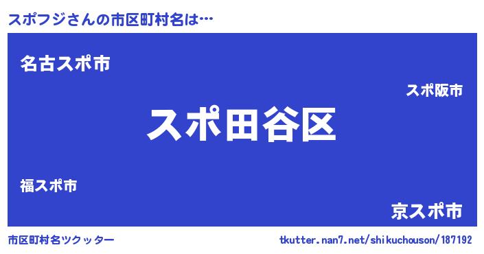 | 意味不明あだ名 | 『住所不定無職スポフジ(95歳)』 |
