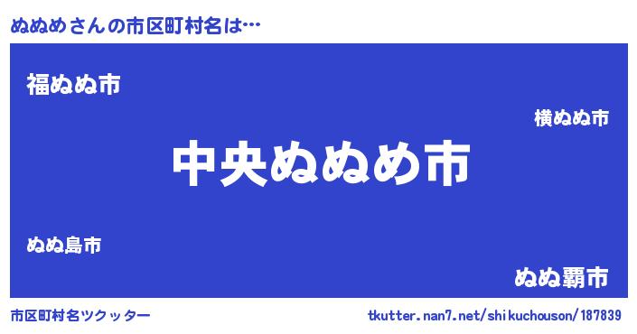 | 男性向けラノベタイトル風あだ名 | 『ぬぬめの憂鬱』 |