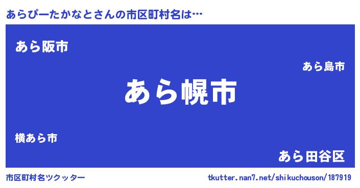 | 男性向けラノベタイトル風あだ名 | 『やはりあらぴーたかなとの青春ラブコメはまちがっている 』 |