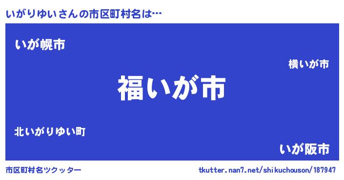 | 男性向けラノベタイトル風あだ名 | 『いがりゆい~年齢イコール彼女いない歴の魔法使い~』 |