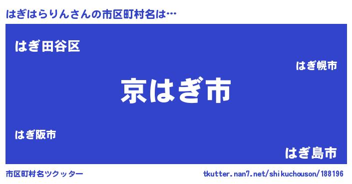 | 意味不明あだ名 | 『住所不定無職はぎはらりん(71歳)』 |