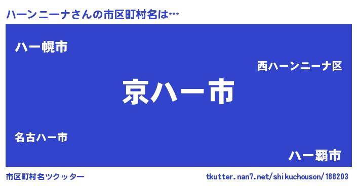 | 意味不明あだ名 | 『住所不定無職ハーンニーナ(59歳)』 |