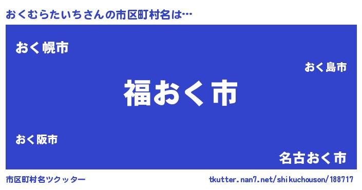 | 男性向けラノベタイトル風あだ名 | 『おくむらたいち~年齢イコール彼女いない歴の魔法使い~』 |