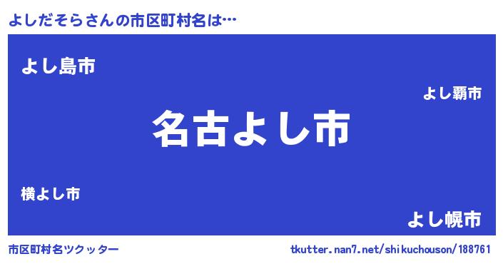 | ヒーロー風カッコイイあだ名 | 『愛の使者よしだそら』『ネオヨシダソラ』 |