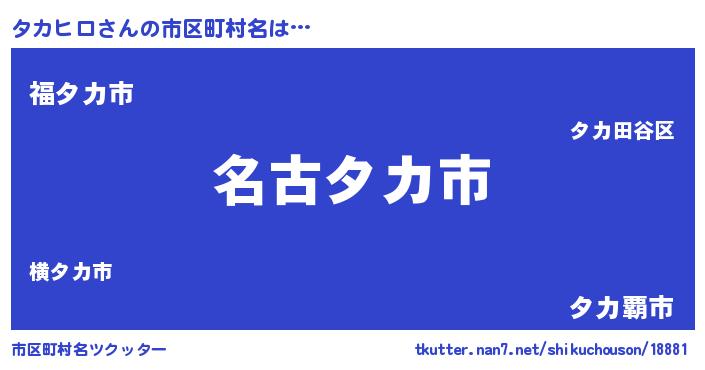 | 男性向けラノベタイトル風あだ名 | 『タカヒロに滅ぼされるだけの簡単なお仕事です』 |