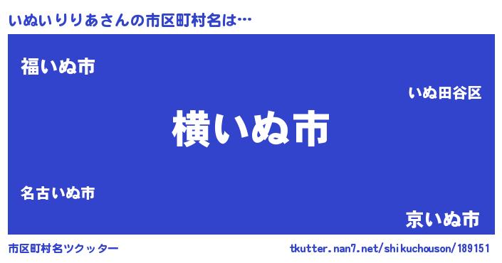 | 男性向けラノベタイトル風あだ名 | 『Re:いぬいりりあから始める異世界生活』 |
