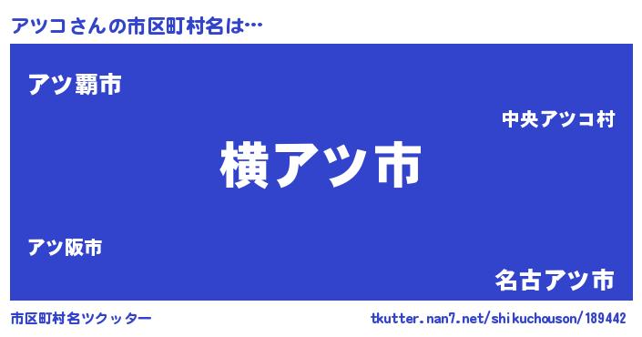 | 意味不明あだ名 | 『自称アツコ』『永久保存アツコ』 |