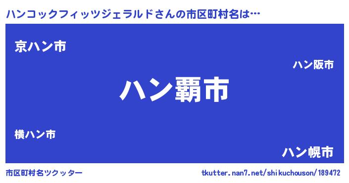 | 男性向けラノベタイトル風あだ名 | 『ハンコックフィッツジェラルドという概念が存在しない退屈な世界 』 |