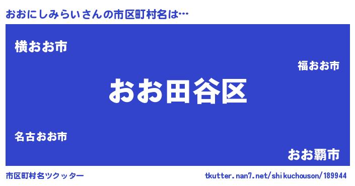 | 意味不明あだ名 | 『自称おおにしみらい』 |