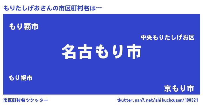 | 男性向けラノベタイトル風あだ名 | 『もりたしげおに滅ぼされるだけの簡単なお仕事です』 |