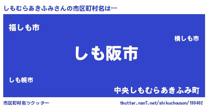 | 意味不明あだ名 | 『とにかく怪しいしもむらあきふみ』 |