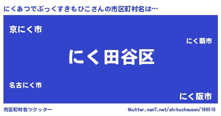 | 意味不明あだ名 | 『住所不定無職にくあつでぶっくすきもひこ(62歳)』 |