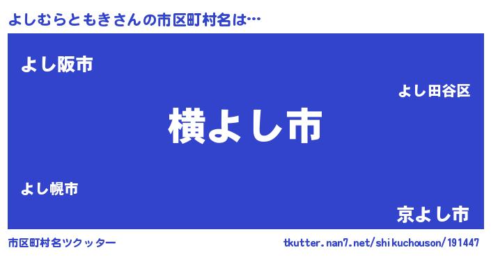 | 意味不明あだ名 | 『自称よしむらともき』 |