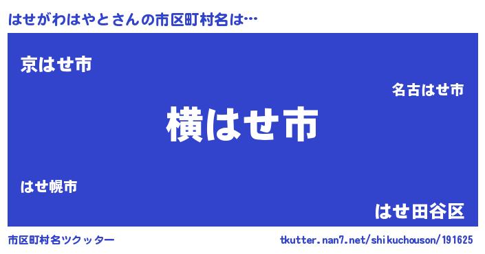 | 男性向けラノベタイトル風あだ名 | 『Re:はせがわはやとから始める異世界生活』 |