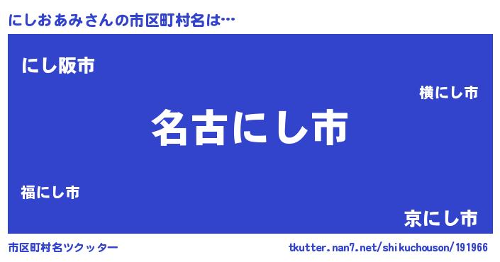 | ポケモン風あだ名 | 『ニシゴンZ』『ヒニシオアミ』 |