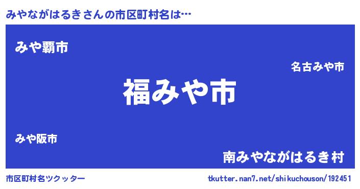 | 肩書あだ名 | 『みやながはるき大将』 |
