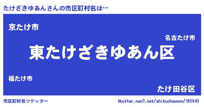 | 男性向けラノベタイトル風あだ名 | 『たけざきゆあんの憂鬱』 |