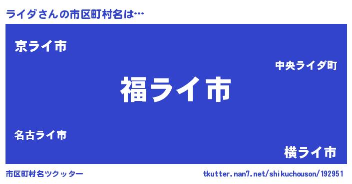 | 意味不明あだ名 | 『エリンギ科ライダ属』『自称ライダ』 |