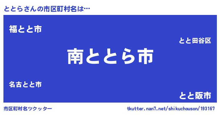 | ヘコむあだ名 | 『ととにゅー』『ととっ子』 |