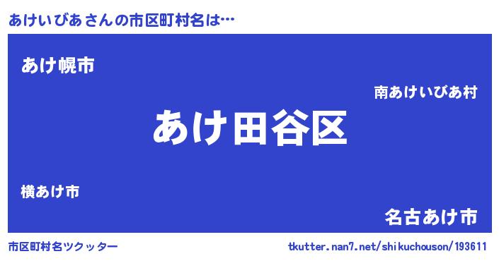 | 男性向けラノベタイトル風あだ名 | 『うちのあけいびあが世界を掌握している!』 |