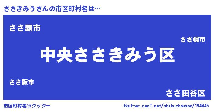 | ヒーロー風カッコイイあだ名 | 『スーパーササキミウ』『ネオササキミウ』 |