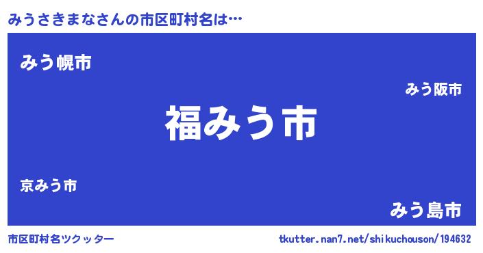 | ヘコむあだ名 | 『つくし』『みう太郎』『みうにゅー』 |