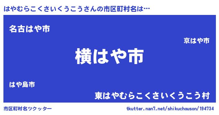 | 女子向けラノベタイトル風あだ名 | 『はやむらこくさいくうこうなんてお断りですっ。』 |