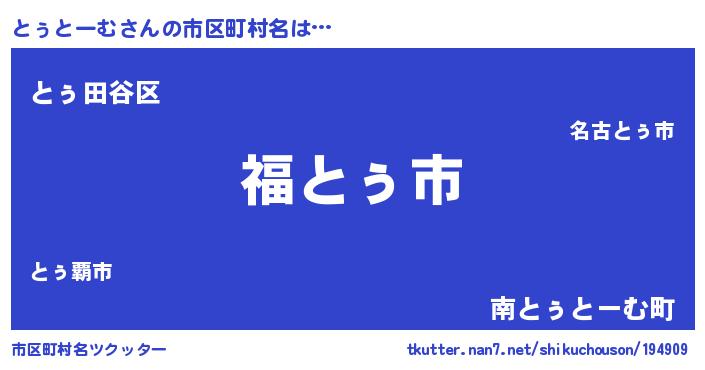 | 男性向けラノベタイトル風あだ名 | 『とぅとーむ~年齢イコール彼女いない歴の魔法使い~』 |