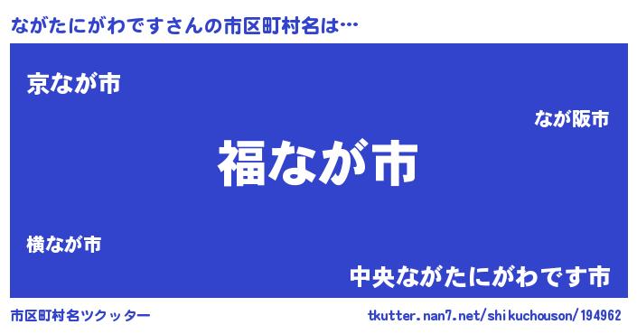 | 男性向けラノベタイトル風あだ名 | 『ながたにがわです~年齢イコール彼女いない歴の魔法使い~』 |