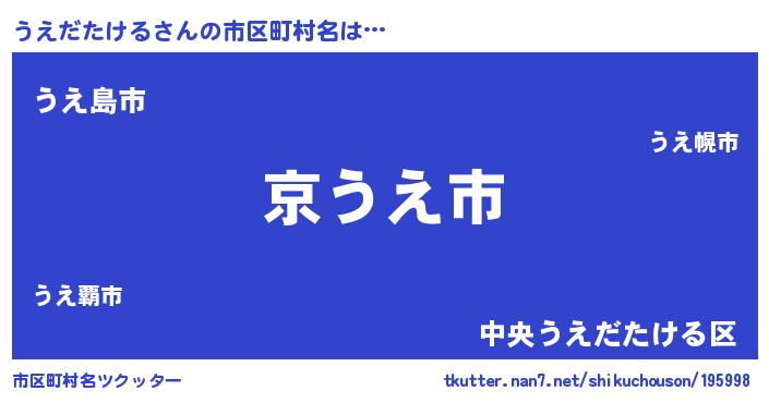| 意味不明あだ名 | 『住所不定無職うえだたける(98歳)』 |