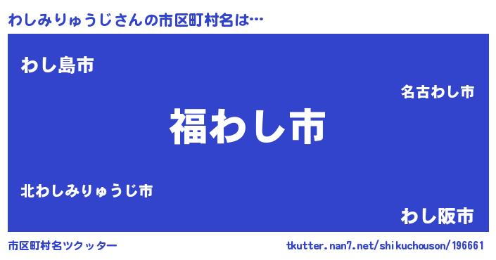 | ヒーロー風カッコイイあだ名 | 『慈愛の使者わしみりゅうじ』 |