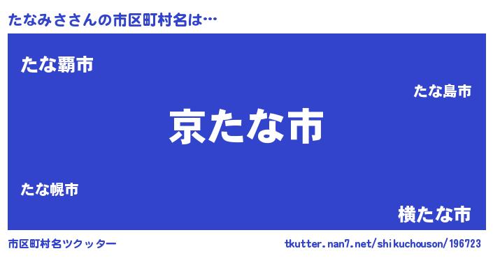 | 意味不明あだ名 | 『住所不定無職たなみさ(47歳)』 |