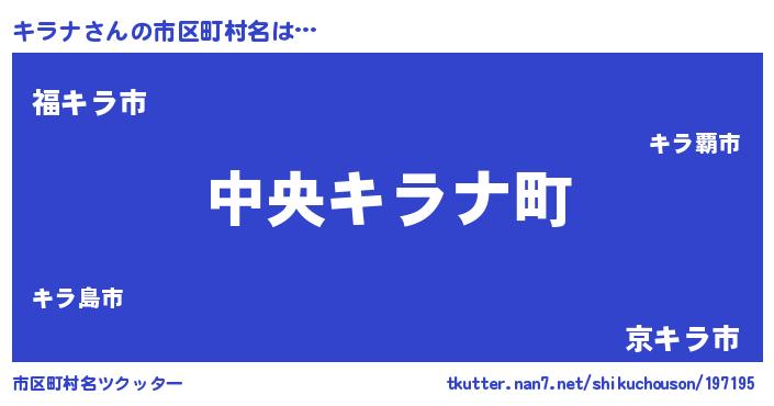 | ヒーロー風カッコイイあだ名 | 『スーパーキラナ』『仮面キラダー』 |