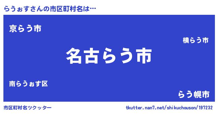 | 意味不明あだ名 | 『住所不定無職らうぉす(77歳)』 |