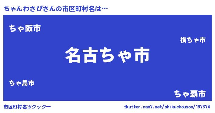 | ヘコむあだ名 | 『ちゃぷりん』『ちゃんわさび(小並感)』 |