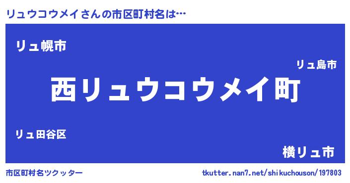 | 男性向けラノベタイトル風あだ名 | 『リュウコウメイアートオンライン』 |