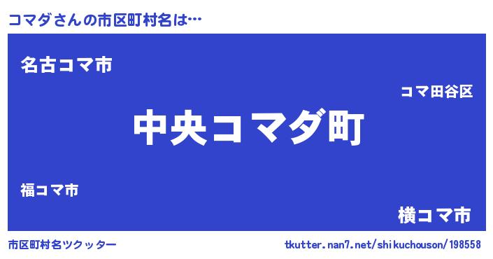 | ヒーロー風カッコイイあだ名 | 『スーパーコマダ』『究極戦士コマダ』 |