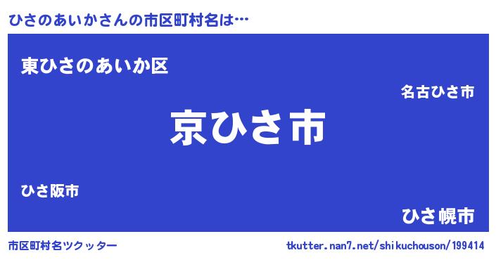 | 意味不明あだ名 | 『住所不定無職ひさのあいか(3歳)』 |