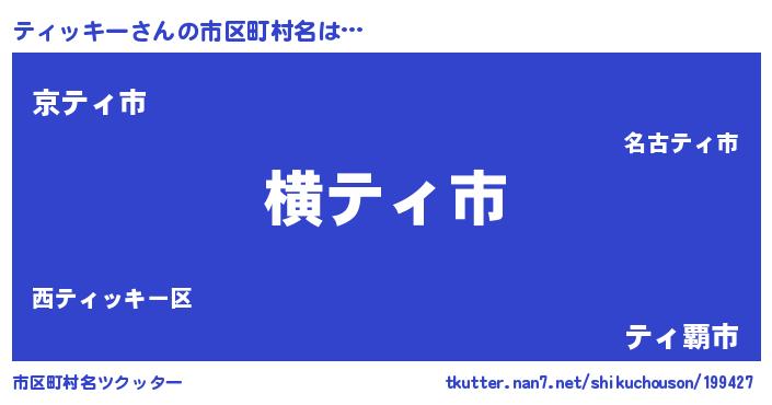 | 男性向けラノベタイトル風あだ名 | 『Re:ティッキーから始める異世界生活』 |