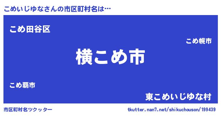 | 意味不明あだ名 | 『自称こめいじゆな』 |