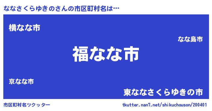 | 男性向けラノベタイトル風あだ名 | 『転生したらななさくらゆきのだった件』 |