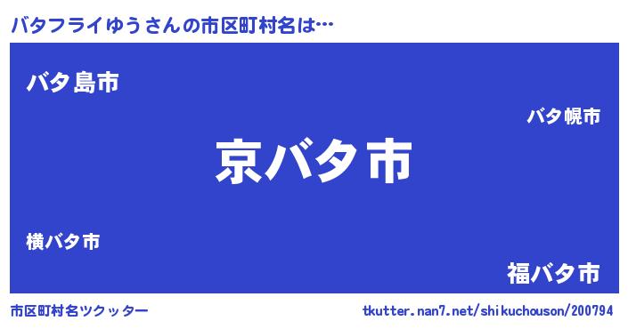 | 欧米人風あだ名 | 『ダレノガレバタフライゆう』 |