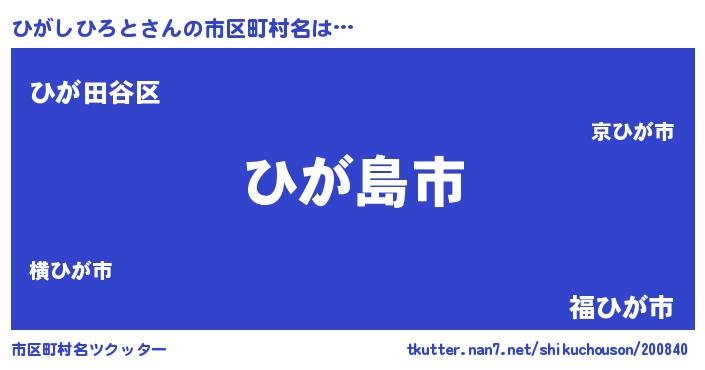 | 男性向けラノベタイトル風あだ名 | 『ノーゲーム・ノーヒガシヒロト』 |