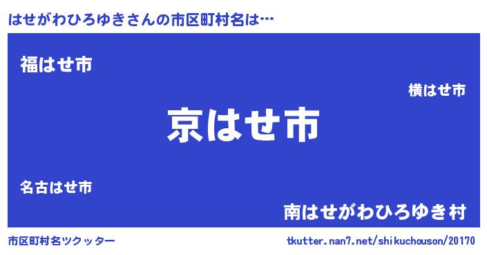 | 男性向けラノベタイトル風あだ名 | 『この素晴らしい世界にはせがわひろゆきを!』 |