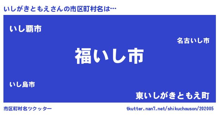 | 肩書あだ名 | 『いしがきともえ大将』 |