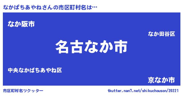 | 胡散臭い通販商品みたいなあだ名 | 『信頼と実績のサプリメント…その名も「なかばちあやね」』 |